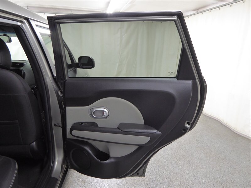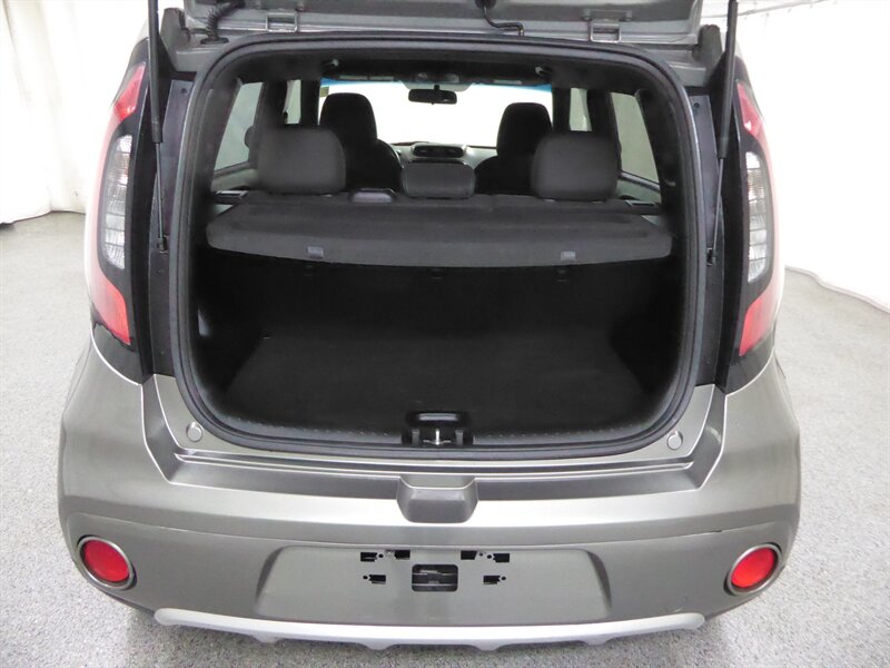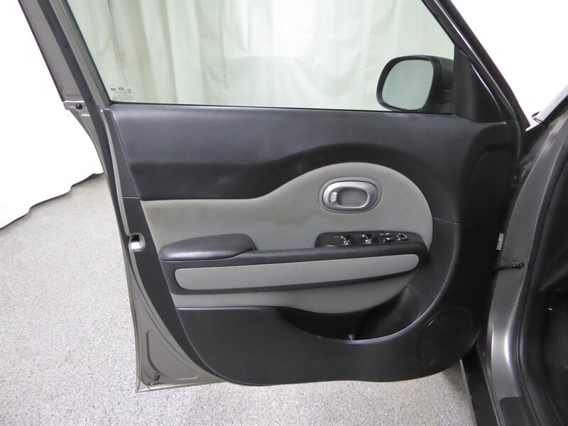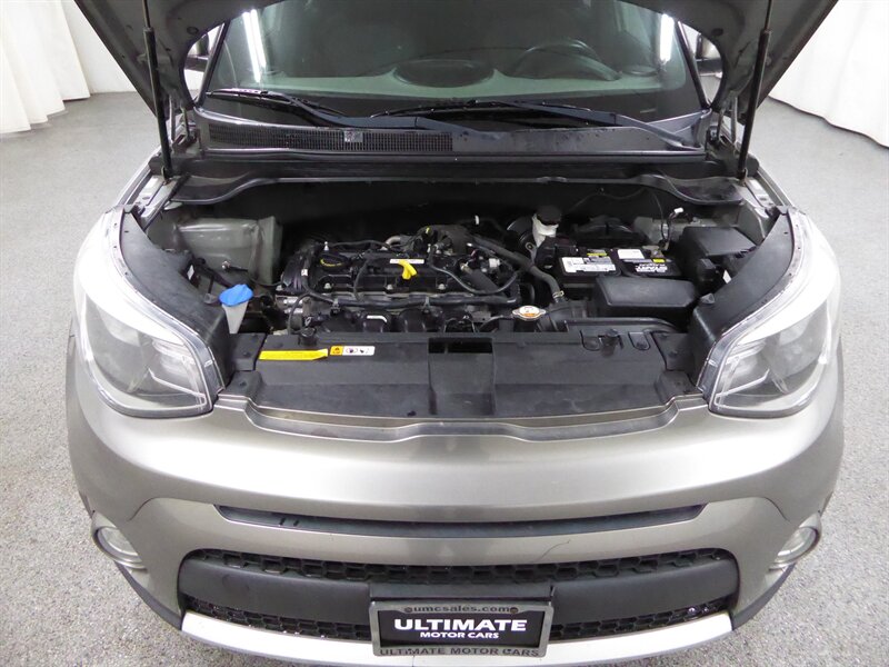 Introducing the 2017 Kia Soul EX Premium, an eye-catching hatchback that combines unique style with practical functionality. Dressed in a sleek grey exterior, this vehicle stands out on the road while maintaining a sophisticated and modern appearance.