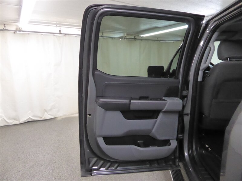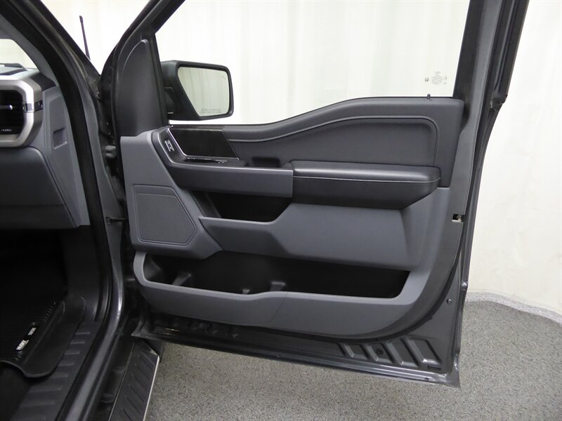 The exterior of this F-150 is finished in a striking Guard/Carbonized Gray, providing a sleek and modern appearance that stands out on the road. The bold design is complemented by features such as LED headlights, a chrome grille, and alloy wheels, enhancing both style and functionality.